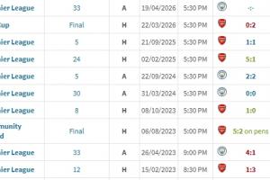 虽然不久前的联赛杯决赛阿森纳0-2不敌曼城,但枪手在英超对曼城已5场不败(2胜3平),其中客场分别是0-0、2-2。