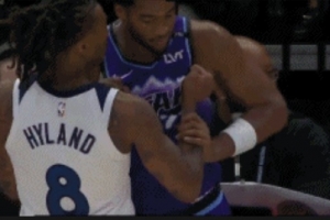GIF-海兰德哨响后拿球&哈克莱斯抢球引发小冲突 两人各吃1T
